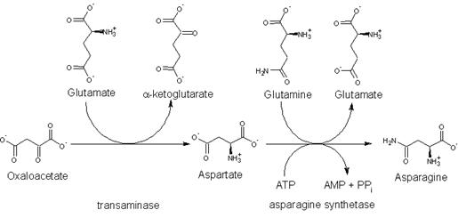 The biosynthesis of asparagine from oxaloacetate