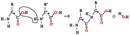 Alpha-amino acids are the building blocks of proteins. Proteins form via the condensation of amino acids to form a chain of amino acid “residues” linked by peptide bonds. Each different protein has a unique sequence of amino acid residues; this sequence is the primary structure of the protein. Just as the letters of the alphabet can be combined to form an almost endless variety of words, amino acids can be linked in varying sequences to form a huge variety of proteins.