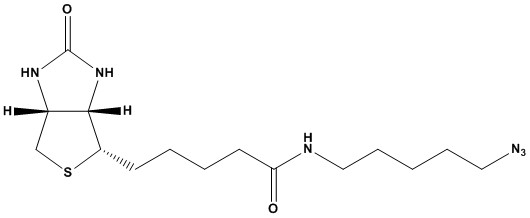 5-(Biotinamido)pentylazide Product Catalog # Size Price (USD) Quantity 5-(Biotinamido)pentylazide 271621-100MG100 mg$300.00 - 6-(Biotinamido)pentylazide-100mg quantity + 5-(Biotinamido)pentylazide 271621-500MG500 mg$800.00 - 7-(Biotinamido)pentylazide-500mg quantity + 5-(Biotinamido)pentylazide 271621-1G1 g$1,350.00 - 8-(Biotinamido)pentylazide-1g quantity + Add to cart Description Synonym: N-(5-Azidopentyl)biotinamide CAS #: 1349190-76-6 Molecular Formula: C15H26N6O2S Molecular Weight: 354.5