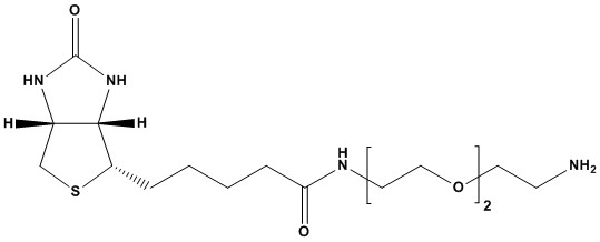 Biotin-PEG2-amine Product Catalog # Size Price (USD) Quantity Biotin-PEG2-amine271601-500MG500 mg$473.00 - Biotin-PEG2-amine-500mg quantity + Biotin-PEG2-amine271601-1G1 g$705.00 - Biotin-PEG2-amine-1g quantity + Add to cart Description CAS #: 138529-46-1 Molecular Formula: C16H30N4O4S Molecular Weight: 374.5