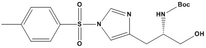 Boc-Histidinol(Tos) Product Catalog # Size Price (USD) Quantity Boc-Histidinol(Tos)200801-1G1 g$143.00 - Boc-Histidinol(Tos)-1g quantity + Boc-Histidinol(Tos)200801-5G5 g$336.00 - Boc-Histidinol(Tos)-5g quantity + Add to cart Description Catalog #: 200801 Molecular Formula: C18H25N3O5 Molecular Weight: 395.5