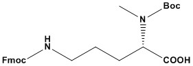 Boc-N-Me-Orn(Fmoc)-OH Product Catalog # Size Price (USD) Quantity Boc-N-Me-Orn(Fmoc)-OH191501-1G1 g$332.00 - Boc-N-Me-Orn(Fmoc)-OH-1g quantity + Boc-N-Me-Orn(Fmoc)-OH191501-5G5 g$996.00 - Boc-N-Me-Orn(Fmoc)-OH-5g quantity + Add to cart Description CAS #: 233688-96-5 Molecular Formula: C26H32N2O6 Molecular Weight: 468.5