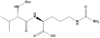 Boc-Val-Cit-OH Product Catalog # Size Price (USD) Quantity Boc-Val-Cit-OH181174-1G1 g$200.00 - Boc-Val-Cit-OH-1G quantity + Boc-Val-Cit-OH181174-5G5 g$400.00 - Boc-Val-Cit-OH-5G quantity + Boc-Val-Cit-OH181174-25G25 g$1,000.00 - Boc-Val-Cit-OH-25G quantity + Add to cart Description CAS #: 870487-08-4 Molecular Formula: C16H30N4O6 Molecular Weight: 374.4