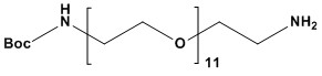 BocNH-PEG11-CH2CH2NH2 Product Catalog # Size Price (USD) Quantity BocNH-PEG11-CH2CH2NH2282408-500MG500 mg$548.00 - BocNH-PEG11-CH2CH2NH2-500mg quantity + BocNH-PEG11-CH2CH2NH2282408-1G1 g$809.00 - BocNH-PEG11-CH2CH2NH2-1g quantity + BocNH-PEG11-CH2CH2NH2282408-5G5 g$2,270.00 - BocNH-PEG11-CH2CH2NH2-5g quantity + Add to cart Description CAS #: 1233234-77-9 Former CAS #: 890091-42-6 Molecular Formula: C29H60N2O13 Molecular Weight: 644.8