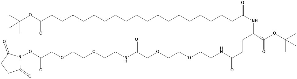 C20(OtBu)-Glu(AEEA-AEEA-OSu)-OtBu Product Catalog # Size Price (USD) Quantity C20(OtBu)-Glu(AEEA-AEEA-OSu)-OtBu182066-1G1 g$1,000.00 - C20(OtBu)-Glu(AEEA-AEEA-OSu)-OtBu-1g quantity + C20(OtBu)-Glu(AEEA-AEEA-OSu)-OtBu182066-5G5 g$3,000.00 - C20(OtBu)-Glu(AEEA-AEEA-OSu)-OtBu-5g quantity + C20(OtBu)-Glu(AEEA-AEEA-OSu)-OtBu182066-25G25 g$7,500.00 - C20(OtBu)-Glu(AEEA-AEEA-OSu)-OtBu-25g quantity + Add to cart Description CAS #: 1118767-17-1 Molecular Formula: C49H86N4O15 Molecular Weight: 971.2