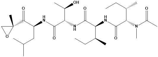 Epoxomicin Product Catalog # Size Price (USD) Quantity Epoxomicin290503-100MG100 mg$800.00 - Epoxomicin-100mg quantity + Epoxomicin290503-500MG500 mg$2,000.00 - Epoxomicin-500mg quantity + Epoxomicin290503-1G1 g$3,000.00 - Epoxomicin-1g quantity + Add to cart Description Synonym: BU-4061T CAS #: 134381-21-8 Molecular Formula: C28H50N4O7 Molecular Weight: 554.7