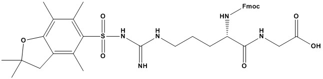 Fmoc-Arg(Pbf)-Gly-OH Product Catalog # Size Price (USD) Quantity Fmoc-Arg(Pbf)-Gly-OH181142-5G5 g$650.00 - Fmoc-Arg(Pbf)-Gly-OH-5g quantity + Fmoc-Arg(Pbf)-Gly-OH181142-25G25 g$1,950.00 - Fmoc-Arg(Pbf)-Gly-OH-25g quantity + Fmoc-Arg(Pbf)-Gly-OH181142-100G100 g$5,500.00 - Fmoc-Arg(Pbf)-Gly-OH-100g quantity + Add to cart Description CAS #: 660846-80-0 Molecular Formula: C36H43N5O8S Molecular Weight: 705.8