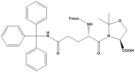 Fmoc-Gln(Trt)-Ser[psi(Me,Me)pro]-OH Product Catalog # Size Price (USD) Quantity Fmoc-Gln(Trt)-Ser[psi(Me,Me)pro]-OH181014-5G5 g$300.00 - Fmoc-Gln(Trt)-Ser[psi(Me,Me)pro]-OH-5g quantity + Fmoc-Gln(Trt)-Ser[psi(Me,Me)pro]-OH181014-25G25 g$850.00 - Fmoc-Gln(Trt)-Ser[psi(Me,Me)pro]-OH-25g quantity + Fmoc-Gln(Trt)-Ser[psi(Me,Me)pro]-OH181014-100G100 g$2,400.00 - Fmoc-Gln(Trt)-Ser[psi(Me,Me)pro]-OH-100g quantity + Add to cart Description Synonym: Fmoc-Gln(Trt)-Ser(psiMe,Mepro)-OH CAS #: 1821378-64-6 Molecular Formula: C45H43N3O7 Molecular Weight: 737.8