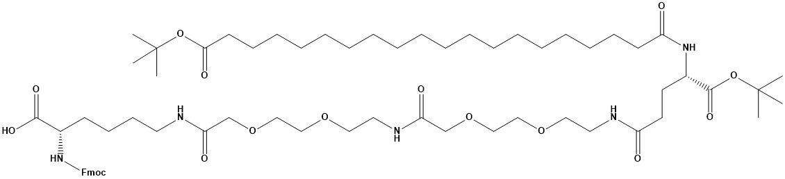 Fmoc-Lys[C20(OtBu)-Glu(AEEA-AEEA)-OtBu]-OH Product Catalog # Size Price (USD) Quantity Fmoc-Lys[C20(OtBu)-Glu(AEEA-AEEA)-OtBu]-OH182068-1G1 g$1,000.00 - Fmoc-Lys[C20(OtBu)-Glu(AEEA-AEEA)-OtBu]-OH-1g quantity + Fmoc-Lys[C20(OtBu)-Glu(AEEA-AEEA)-OtBu]-OH182068-5G5 g$3,000.00 - Fmoc-Lys[C20(OtBu)-Glu(AEEA-AEEA)-OtBu]-OH-5g quantity + Fmoc-Lys[C20(OtBu)-Glu(AEEA-AEEA)-OtBu]-OH182068-25G25 g$7,500.00 - Fmoc-Lys[C20(OtBu)-Glu(AEEA-AEEA)-OtBu]-OH-25g quantity + Add to cart Description CAS #: 2460751-66-8 Molecular Formula: C66H105N5O16 Molecular Weight: 1224.6