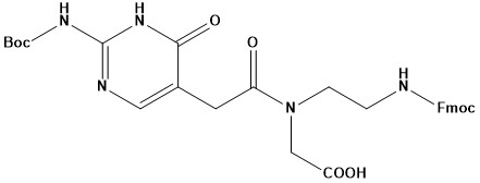 Fmoc-PNA-J(Boc)-OH Product Catalog # Size Price (USD) Quantity Fmoc-PNA-J(Boc)-OH183530-1G1 g$500.00 - Fmoc-PNA-J(Boc)-OH-1g quantity + Fmoc-PNA-J(Boc)-OH183530-5G5 g$1,500.00 - Fmoc-PNA-J(Boc)-OH-5g quantity + Add to cart Description Synonym: Fmoc-J(Boc)-Aeg-OH CAS #: 1095275-70-9 Molecular Formula: C30H33N5O8 Molecular Weight: 591.6
