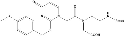 Fmoc-PNA-ThioU(PMB)-OH Product Catalog # Size Price (USD) Quantity Fmoc-PNA-ThioU(PMB)-OH183532-1G1 g$1,000.00 - Fmoc-PNA-ThioU(PMB)-OH-1g quantity + Fmoc-PNA-ThioU(PMB)-OH183532-5G5 g$3,500.00 - Fmoc-PNA-ThioU(PMB)-OH-5g quantity + Add to cart Description CAS #: 2245800-85-3 Molecular Formula: C33H32N4O7S Molecular Weight: 628.7