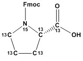 Fmoc-Pro-OH (13C5,15N) Product Catalog # Size Price (USD) Quantity Fmoc-Pro-OH (13C5,15N)183019-100MG100 mgPlease InquirePlease InquireFmoc-Pro-OH (13C5,15N)183019-500MG500 mgPlease InquirePlease InquireFmoc-Pro-OH (13C5,15N)183019-1G1 gPlease InquirePlease Inquire Description Labeled CAS #: 1217452-48-6 Unlabeled CAS #: 71989-31-6 Molecular Formula: (13C)5C15H19(15N)O4 Molecular Weight: 343.3