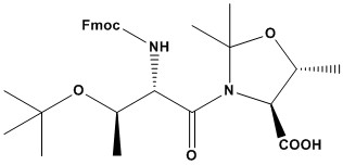 Fmoc-Thr(tBu)-Thr[psi(Me,Me)pro]-OH Product Catalog # Size Price (USD) Quantity Fmoc-Thr(tBu)-Thr[psi(Me,Me)pro]-OH181040-5G5 g$300.00 - Fmoc-Thr(tBu)-Thr[psi(Me,Me)pro]-OH-5g quantity + Fmoc-Thr(tBu)-Thr[psi(Me,Me)pro]-OH181040-25G25 g$900.00 - Fmoc-Thr(tBu)-Thr[psi(Me,Me)pro]-OH-25g quantity + Fmoc-Thr(tBu)-Thr[psi(Me,Me)pro]-OH181040-100G100 g$2,600.00 - Fmoc-Thr(tBu)-Thr[psi(Me,Me)pro]-OH-100g quantity + Add to cart Description Synonym: Fmoc-Thr(tBu)-Thr(psiMe,Me)-OH CAS #: 1676104-73-6 Molecular Formula: C30H38N2O7 Molecular Weight: 538.6