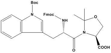 Fmoc-Trp(Boc)-Ser[psi(Me,Me)pro]-OH Product Catalog # Size Price (USD) Quantity Fmoc-Trp(Boc)-Ser[psi(Me,Me)pro]-OH181041-5G5 g$350.00 - Fmoc-Trp(Boc)-Ser[psi(Me,Me)pro]-OH-5g quantity + Fmoc-Trp(Boc)-Ser[psi(Me,Me)pro]-OH181041-25G25 g$975.00 - Fmoc-Trp(Boc)-Ser[psi(Me,Me)pro]-OH-25g quantity + Fmoc-Trp(Boc)-Ser[psi(Me,Me)pro]-OH181041-100G100 g$2,800.00 - Fmoc-Trp(Boc)-Ser[psi(Me,Me)pro]-OH-100g quantity + Add to cart Description Synonym: Fmoc-Trp(Boc)-Ser(psiMe,Mepro)-OH CAS #: 908601-15-0 Molecular Formula: C37H39N3O8 Molecular Weight: 653.7