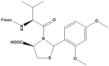 Fmoc-Val-Cys[psi(Dmp,H)pro]-OH Product Catalog # Size Price (USD) Quantity Fmoc-Val-Cys[psi(Dmp,H)pro]-OH181046-1G1 g$300.00 - Fmoc-Val-Cys[psi(Dmp,H)pro]-OH-1g quantity + Fmoc-Val-Cys[psi(Dmp,H)pro]-OH181046-5G5 g$700.00 - Fmoc-Val-Cys[psi(Dmp,H)pro]-OH-5g quantity + Add to cart Description Synonym: Fmoc-Val-Cys[psi(Dmbz,H)pro]-OH CAS #: 1926163-08-7 Molecular Formula: C32H34N2O7S Molecular Weight: 590.7