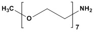 mPEG7-NH2 Product Catalog # Size Price (USD) Quantity mPEG7-NH2281205-1G1 g$345.00 - mPEG7-NH2-1g quantity + mPEG7-NH2281205-5G5 g$863.00 - mPEG7-NH2-5g quantity + Add to cart Description Synonym: 2,5,8,11,14,17,20-Heptaoxadocosan-22-amine CAS #: 170572-38-0 Molecular Formula: C15H33NO7 Molecular Weight: 339.4