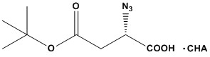 N3-Asp(OtBu)-OH•CHA Product Catalog # Size Price (USD) Quantity N3-Asp(OtBu)-OH•CHA180145-1G1 g$250.00 - N3-Asp(OtBu)-OH•CHA-1g quantity + N3-Asp(OtBu)-OH•CHA180145-5G5 g$673.00 - N3-Asp(OtBu)-OH•CHA-5g quantity + Add to cart Description Synonym: L-azidoaspartic acid mono-tert-butyl ester CHA salt Molecular Formula: C8H13N3O4•C6H13N Molecular Weight: 314.4