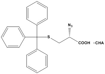 N3-Cys(Trt)-OH•CHA Product Catalog # Size Price (USD) Quantity N3-Cys(Trt)-OH•CHA180303-1G1 g$270.00 - N3-Cys(Trt)-OH•CHA-1g quantity + N3-Cys(Trt)-OH•CHA180303-5G5 g$765.00 - N3-Cys(Trt)-OH•CHA-5g quantity + Add to cart Description Synonym: S-Trityl-L-azidocysteine CHA salt Molecular Formula: C22H19N3O2S•C6H13N Molecular Weight: 488.6