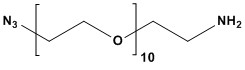N3-PEG10-CH2CH2NH2 Product Catalog # Size Price (USD) Quantity N3-PEG10-CH2CH2NH2282905-1G1 g$698.00 - N3-PEG10-CH2CH2NH2-1g quantity + N3-PEG10-CH2CH2NH2282905-5G5 g$1,705.00 - N3-PEG10-CH2CH2NH2-5g quantity + Add to cart Description CAS #: 912849-73-1 Molecular Formula: C22H46N4O10 Molecular Weight: 526.6