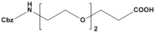 Z-NH-PEG2-CH2CH2COOH Product Catalog # Size Price (USD) Quantity Z-NH-PEG2-CH2CH2COOH280305-1G1 g$242.00 - Z-NH-PEG2-CH2CH2COOH-1g quantity + Z-NH-PEG2-CH2CH2COOH280305-5G5 g$529.00 - Z-NH-PEG2-CH2CH2COOH-5g quantity + Add to cart Description Synonyms: Z-9-amino-4,7-dioxanonanoic acid Z-AEEP Molecular Formula: C15H21NO6 Molecular Weight: 311.3
